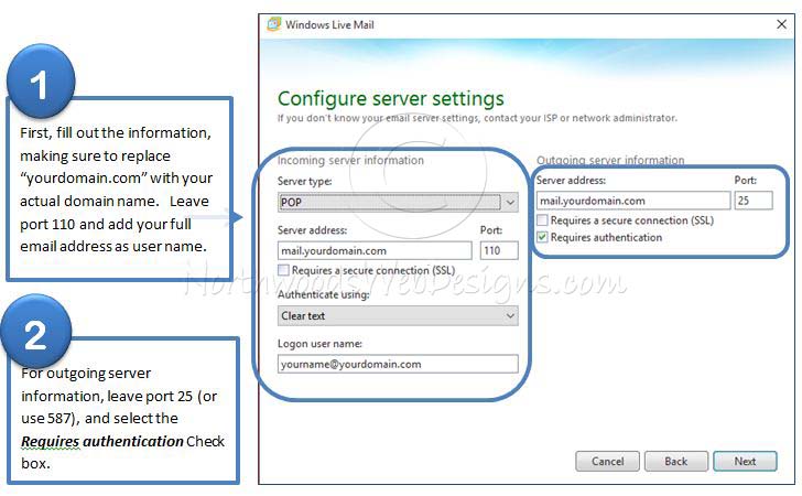 4)      On the Internet E-mail settings screen, fill out the information with your username and domain information.